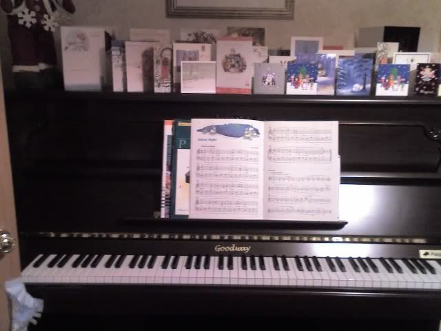 Since we're sharing pictures of our instruments: My piano. The picture was taken 2 years ago, at Christmas, as you can probably tell.  |