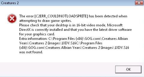 The Good Old Games version of Creatures 2 is designed so that it can run on Vista. Maybe Sweet World isn't compatible with the Good Old Games version of Creatures 2? Sweet World was working fine until yesterday. Anyway, I'll just uninstall and reinstall the game... because I feel like it.