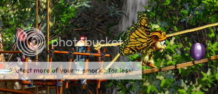 Poor Amber (Rat-tailed)! She fell off the rocks a few minutes ago and hasn't looked cheerful since. She also hasn't attempted to cross either of the bridges I added that connect this treehouse to other locations. I hope she doesn't suffer from vertigo.