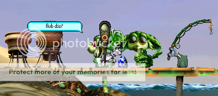 Meanwhile, on upper Albia, Holly (Jessica) is busily trying to relieve that pesky boredom by pulling a button (no, no, darling, you push it) when there's a perfectly-good set of drums right there. With luck, she'll notice that before her hands fall off from trying to pull a button that doesn't want to come out... or do anything, really. That button is useless thanks to the Ocean Bridges COB.