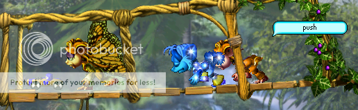 Bella (HavenHoney) and Laura have both fallen onto the treehouse below! With a heavy heart and knowing that she didn't fly, Laura is now approaching the kind purple ball in the hopes of alleviating her misery... but I'd watch your step if I were you, Laura. Bella doesn't seem to amused at the thought of you playing with what has essentially been "her" toy for the past ten minutes.