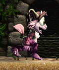 | A Gizmo CFE Norn created by splicing others together with the Supersplicer. She is directly related to Dafne, Daemon and Damson and has the same edits. She has a few more quirks, thanks to the Supersplicer's mutation-creating function; most noticeably a nice orange tint.