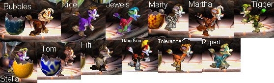 | Here are all the Norns from Round 1 of the Project Teddy Wolfling Run! Twelve in all, pre-run, non CFE.