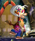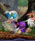 | Alfonso is Hatchery Purple Mountain Norn and is the companion of my other Norn, Allie (who's also up for adoption). As you can clearly see, he's a fan of Fig the Grendel's Fig Tree!  |