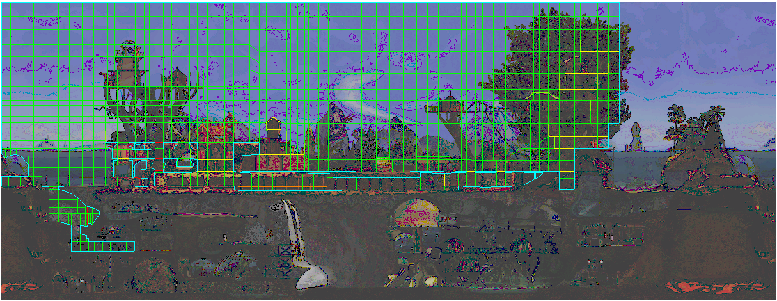I have to say I am not personally bothered by the palette differences. I feel like they give the upper parts of the map a sunny openness and make the underparts look cooler and more underground.