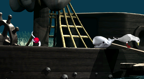 After prodding an old telescope, the old ship grabbed this norn's interest, and he wandered aboard. It was at this time that some mysterious force implanted the word "Howard" into his mind. In a few moments, he decided to start calling himself that. What had decided to christen him that was beyond his concern at the moment. He seemed to be more interested in examining a plush whale something had left on the deck.